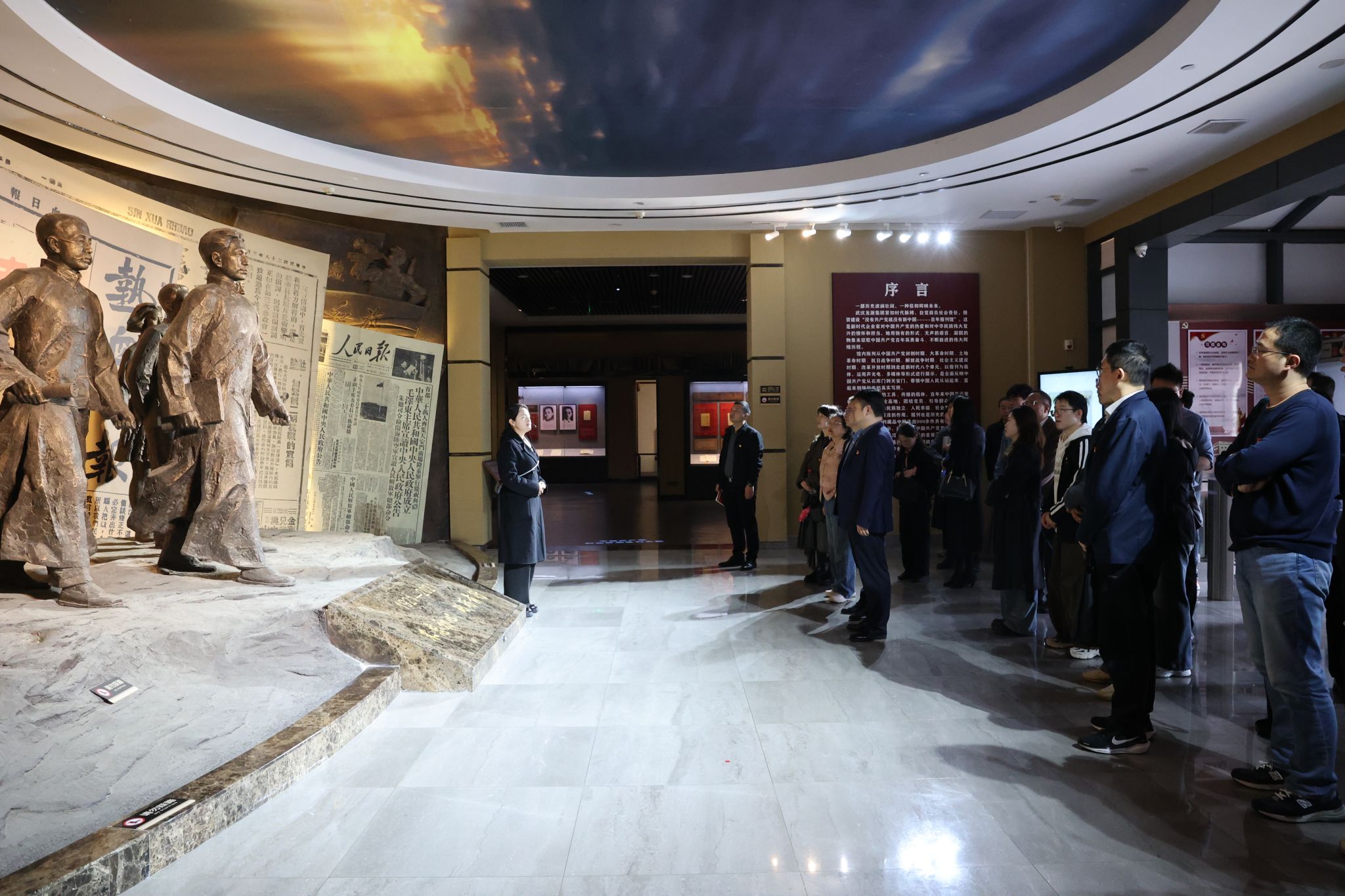 在武汉龙源红色报刊博物馆,全体党员依次参观中国共产党创立初期、土地革命时期、全民抗战时期、改革开放时期及新时代报刊文献等八个历史主题展区,近距离观摩《新青年》《中国青年》等珍贵报刊原件,透过泛黄纸张、珍贵文献、场景复原,了解党报办报背后那些在革命岁月中以笔为枪、坚守舆论阵地的红色故事,深刻感悟红色报刊所承载的初心使命与精神力量。