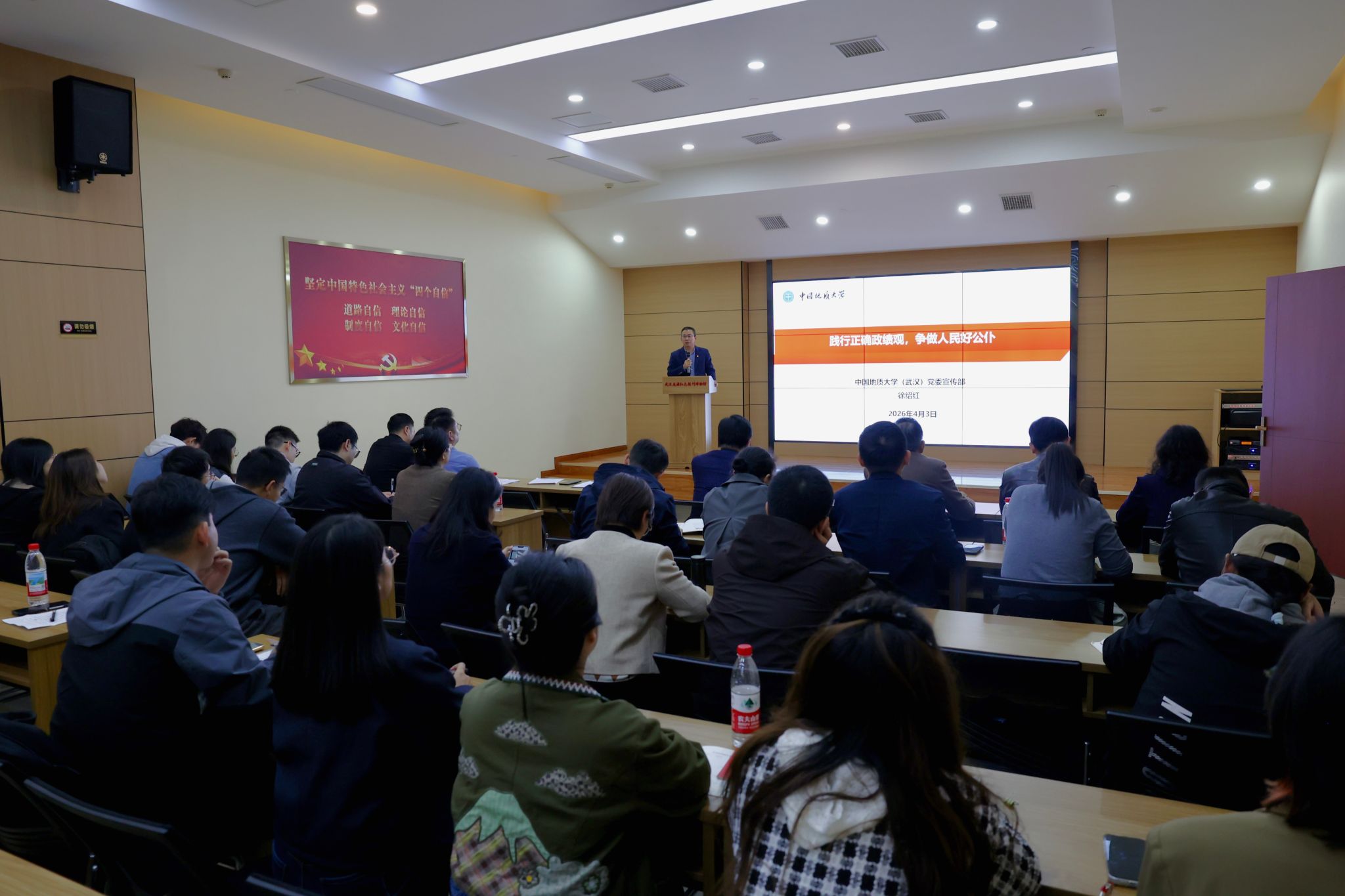 宣传部党支部书记徐绍红系统阐释了政绩观的内涵,深入剖析了政绩观与权力观、地位观、人民观、群众观及世界观、人生观、价值观的内在逻辑关系,梳理了党中央关于正确政绩观的重要部署与要求。他结合习近平总书记有关树立和践行正确政绩观重要论述和典型案例,详细阐述了践行正确政绩观的实践路径。